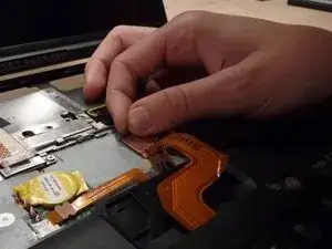 Потяните вверх, чтобы отсоединить шлейф клавиатуры.