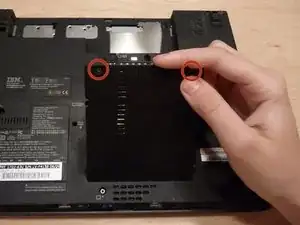 Открутите черный винт Phillips #2 длиной 4 мм, крепящий крышку отсека жёсткого диска.