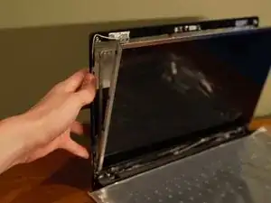 Отвинтите четыре винта (по одному в каждом углу), крепящие экран к крышке.