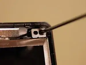 Отвинтите 8 винтов (по 4 с каждой стороны), которые крепят петли к экрану.
