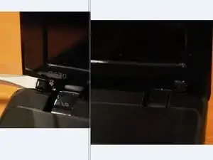 Подденьте рамку в показанном месте пластиковой лопаткой или маленькой плоской отвёрткой, чтобы освободить первые несколько фиксирующих защёлок.