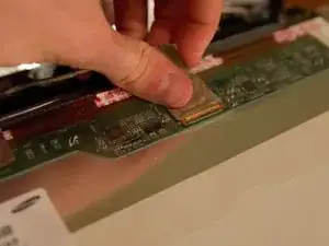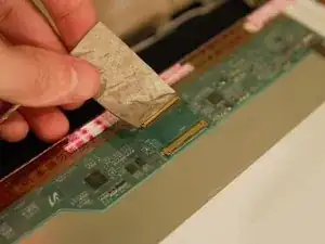 Крышка отделится от экрана, но кабели останутся подключёнными. Подпереть крышку, чтобы не натягивать кабели.