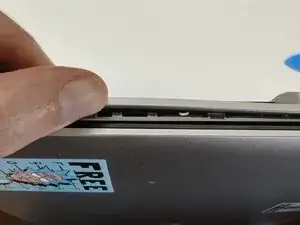 Теперь вы можете начать снимать пластиковый корпус с помощью инструмента для открытия и лопатки. Будьте осторожны, но также уверены, это должно сняться довольно легко. Если у вас нет инструмента для открытия, убедитесь, что используемый вами инструмент изготовлен из более мягкого материала, чем корпус ноутбука. Таким образом, можно избежать повреждения корпуса.
