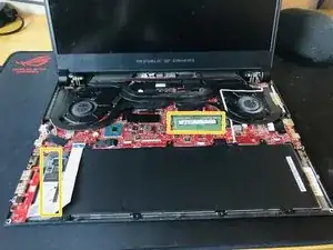 Это очень простое разборка/ремонт/обновление — называйте как хотите. Но для людей, которые, как и я, новички в ремонте, я разложу всё так, как если бы Барни Фиолетовый учил детей в детском саду. Я делаю это на GX531GS, но разборка очень похожа на всех игровых ноутбуках Asus Zephyrus с клавиатурой, сдвинутой вперёд.