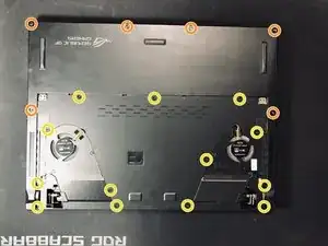 Теперь снимите 13 винтов Phillips 0, отмеченных желтым.