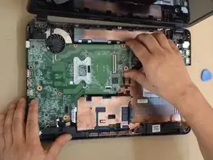 Снимите плату, начиная с правой стороны.