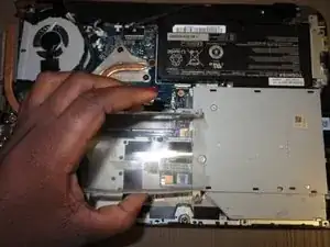 Удалите оптический привод из ноутбука.