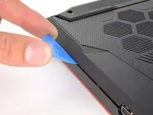 Снова вставьте лопатку между левым верхним углом задней крышки и корпусом.