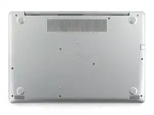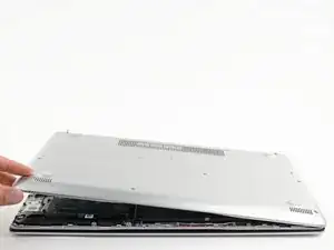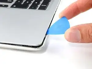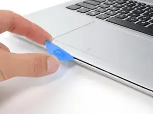 Вставьте лопатку между передним краем задней крышки и корпусом, рядом с тачпадом.