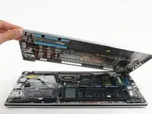 Подденьте вверх, чтобы освободить зажимы вдоль переднего края ноутбука.