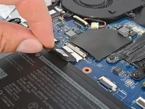 Оттяните вкладку на головке кабеля батареи от разъема, чтобы отключить батарею.