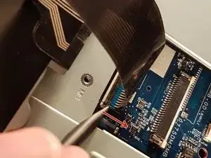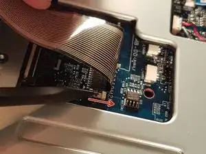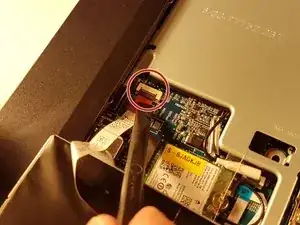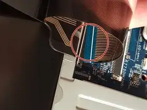 Поднимите язычок, удерживающий разъём, отмеченный красным кругом.