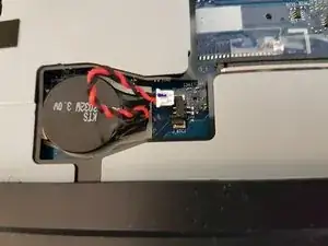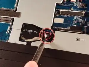 Поднимите батарею, одновременно разблокируя защёлку, отмеченную красным кругом.