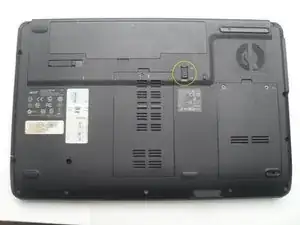 Передвиньте переключатель, показанный в круге выше, и извлеките аккумулятор из его гнезда. Для удаления этой детали не нужны винты, и аккумулятор должен легко выйти.