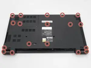 Удалите оставшиеся 18 винтов PH1 длиной 6 мм с нижней крышки ноутбука.