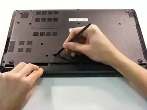 Используйте инструмент для вскрытия, чтобы отсоединить заднюю часть ноутбука от внутренней крышки.