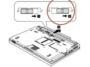 Переместите замок батареи в открытое положение.{2}