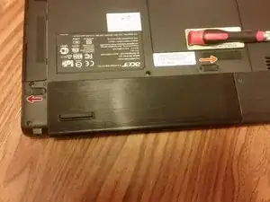Переверните ноутбук вверх дном и направьте аккумулятор к себе.