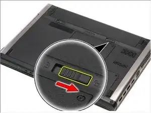 Сдвиньте защёлку освобождения аккумулятора в положение разблокировки.