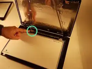 Снимите кусочек скотча, затем отключите разъем, окруженный зеленым