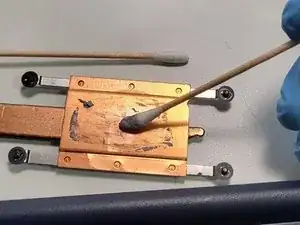 Очистите термопасту с помощью 99% изопропилового спирта и ватной палочки