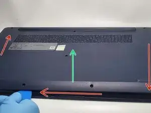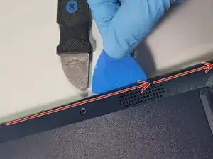 Вставьте инструмент для поддевания вертикально в зазор между боковой и нижней панелью