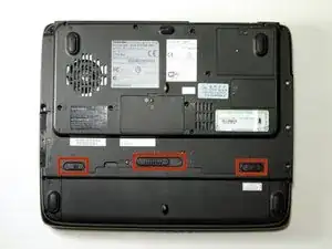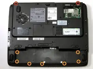 Переверните ноутбук так, чтобы нижняя часть была обращена вверх.
