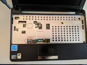 То же самое сделайте с синим кабелем тачпада слева.