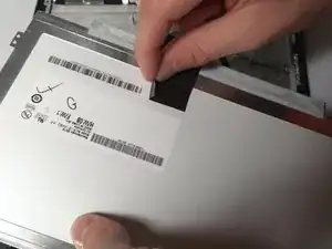 Пальцами снимите клейкую ленту, расположенную на задней части экрана возле места подключения провода.