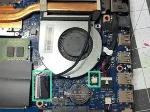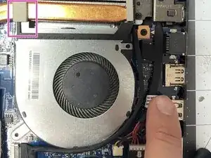 Существует ZIF-разъем, который нужно отсоединить, чтобы облегчить снятие вентилятора