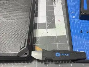 Осторожно перемещайте открывалку вокруг периметра крышки, чтобы освободить пластиковые защелки, удерживающие нижнюю крышку на корпусе