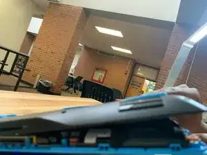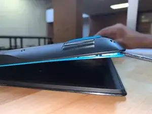 Вставьте плоскую отвертку или медиатор между крышкой клавиатуры и нижней панелью.