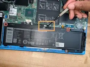 Найдите аккумулятор и открутите два винта крестовой отверткой #1, крепящие его к раме.