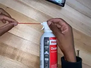 Присоедините пластиковую трубочку к баллончику со сжатым воздухом.