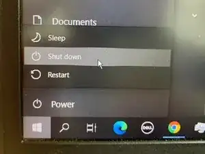 Выключите компьютер, нажав кнопку Windows внизу слева на экране. Нажмите «Пуск», затем выберите «Завершение работы».