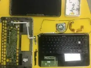 Он должен выглядеть примерно так после снятия динамиков, батареи, дочерней платы и вентилятора.