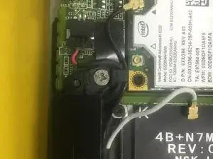 Не забудьте о ... как это назвать? Скобе для карты WLAN. На фото неправильный винт — у вас должен быть чуть более крупный Phillips-винт для её крепления.