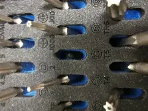 Используя биту T5 в вашем инструменте, открутите (5) винтов. Смотрите другое изображение для увеличенного вида головки винта.
