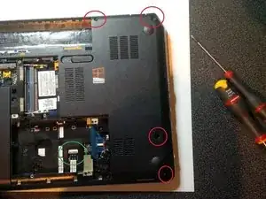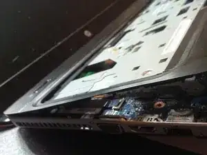 вы можете снять экран или, точнее, заменить экран, не разбирая полностью ноутбук. просто следуйте любой другой инструкции по замене экрана. в общем, это делается так же, поэтому я не делал дополнительные фото и не проводил подробное руководство.