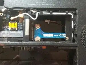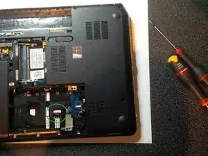 ещё был один винт на металлической панели, он находится на правой стороне, чуть выше отсека DVD. У меня нет фото..