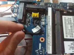 также снимите гибкий кабель (коннектор), подключённый к материнской плате. см. зелёный круг на втором фото.