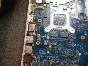 поднимите материнскую плату вверх и извлеките её из корпуса. фотографии не идут в порядке, поэтому следуйте моему объяснению — фотографии служат лишь подсказкой.