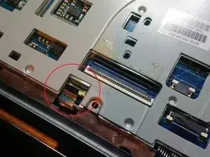 после этого поднимите клавиатуру и снимите её с разъёма материнской платы. (поднимите маленькую чёрную крышку разъёма (аккуратно) и выньте кабель.)