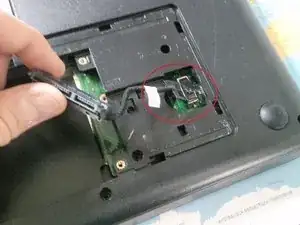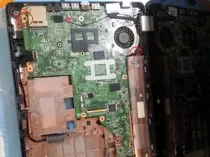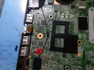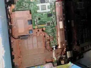 Извлеките материнскую плату, подняв её и сдвинув вправо. Возможно, потребуется отодвинуть экран на несколько миллиметров, чтобы вытащить плату.