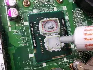 Теперь последние шаги. Нанесем новую термопасту на припаянные процессор и графический чип.