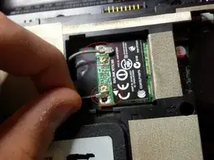 Отключите антенны Wi‑Fi и извлеките модуль Wi‑Fi. Запомните расположение антенн для последующей сборки.