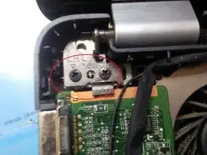 После отключения всех кабелей и винтов можно открутить винты петли экрана. Должно быть достаточно снять винты только с левой петли.