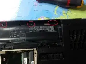 Сначала снимите винты в отсеке для аккумулятора.