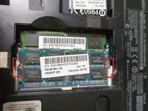 Отведите две защёлки наружу, чтобы освободить планку оперативной памяти, затем извлеките её. Повторите для второй планки.