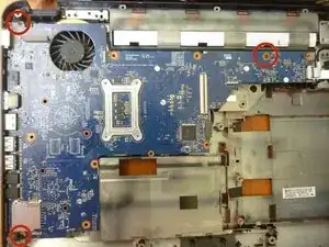 Удалите эти три винта и сдвиньте материнскую плату вправо, чтобы вынуть её из корпуса.